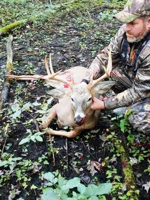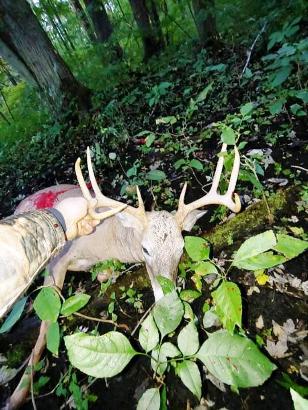Kent's 100 grain Rage broadhead was very effective. The BUCK went